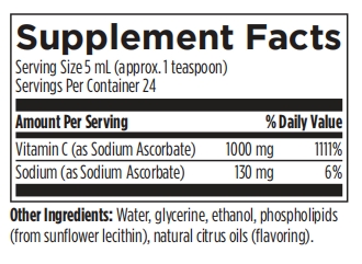 Liposomal C provides this essential water-soluble nutrient in a unique liposomal delivery. Liposomes are spheres made of phospholipids, which are the primary building blocks of cell membranes that help facilitate nutrient absorption. Each 5 mL serving (approximately 1 teaspoon) of this lemon-flavored formula provides 1,000 mg of vitamin C as sodium ascorbate. The 130 mg of sodium per serving helps to further support the absorption of vitamin C.