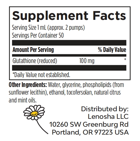 Glutathione Liposome provides 100 mg of reduced glutathione in each 1 mL serving (approximately 2 pumps). This product is formulated using liposomal technology, which results in superior delivery, absorption, and bioavailability. Liposomal delivery bypasses proteolytic degradation in the gastrointestinal (GI) tract and is uniquely effective for reaching and interacting with target tissues. Thus, this technology helps to overcome the absorption challenges typically faced with oral glutathione supplementation. Glutathione is one of the most powerful antioxidants produced by the body. It helps protect cells against oxidative stress from dietary and environmental free radicals, and those resulting from normal metabolic processes.* Glutathione protects vulnerable DNA from damage, while also serving as a key factor in proper detoxification.* Glutathione Liposome is offered in a lemon-peppermint–flavored formulation.