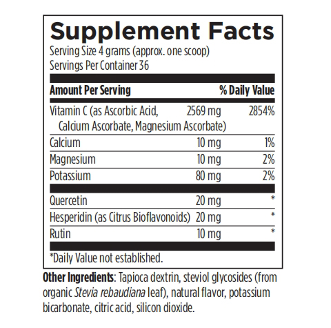 Vitamin C and bioflavonoids are found together in nature, because they work synergistically; for instance, oranges are rich in both vitamin C and the bioflavonoid, hesperidin. The inclusion of bioflavonoids in Vitamin C Powder+™ helps the body properly absorb and use vitamin C, and assists in preventing vitamin C from being destroyed by oxidation.