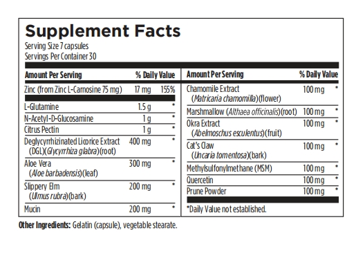 • Provides 1.5 grams of L-glutamine, 1 gram of citrus pectin, and 1 gram of N-acetyl-D-glucosamine per serving