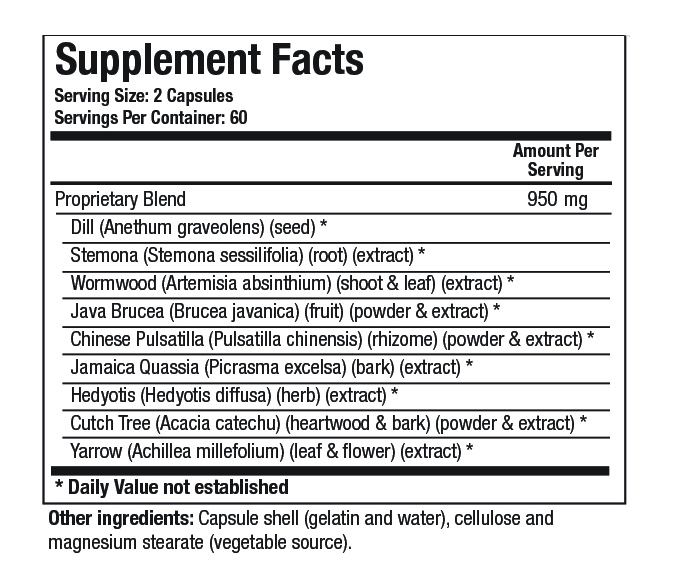 Warnings:Not recommended for pregnant or lactating women. May cause mild constipation in sensitive individuals. If constipation persists, discontinue use and contact your healthcare professional. Wormwood (Artemisia absinthium) is not recommended concurrently with drugs that thin the blood, drugs that reduce stomach acid, or drugs that prevent or lessen seizures. Consuming Wormwood may intensify the effects and side effects of drinking alcohol. KEEP OUT OF REACH OF CHILDREN.